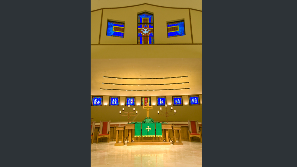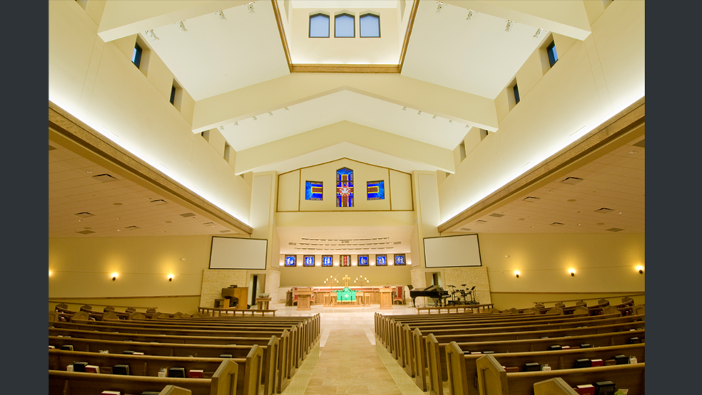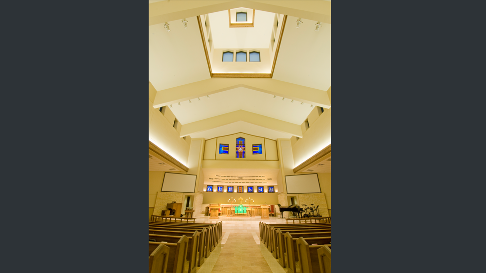 The three lamp coves were dual switched to give the congregation possible light levels of 33%, 66%, and 100%, an economical and practical solution that avoided the extensive costs of dimming ballasts throughout the sanctuary.